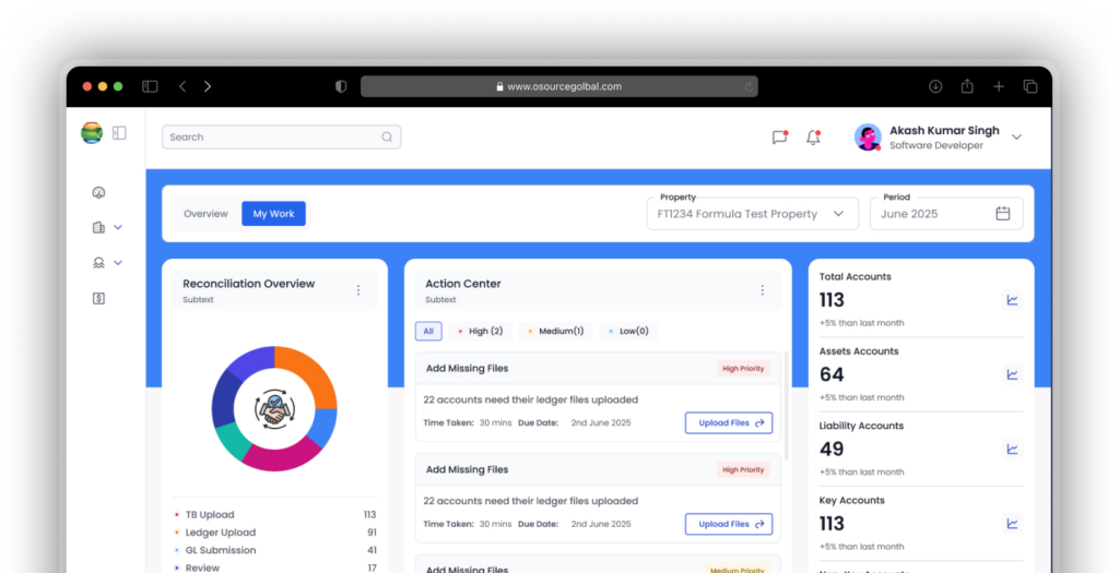 Osource manages end-to-end general ledger accounting from journal entries and reconciliations to period-end close  with automated controls that ensure accuracy and audit readiness at all times.
